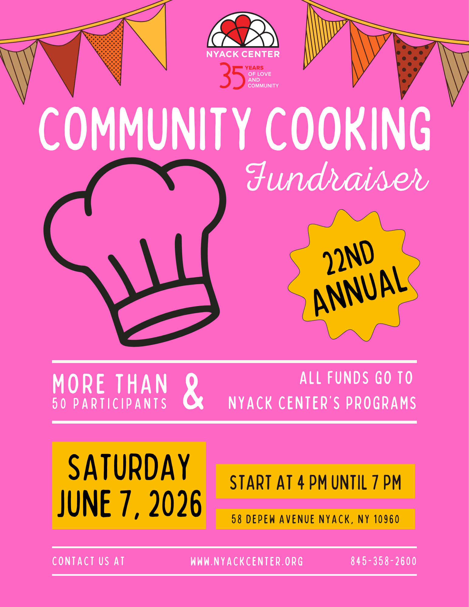 Nyack Center will host its annual COMMUNITY COOKING on Sunday, June 7, 2026. Nyack Center’s Community Cooking is a cherished annual event where professional and amateur community members cook for community!